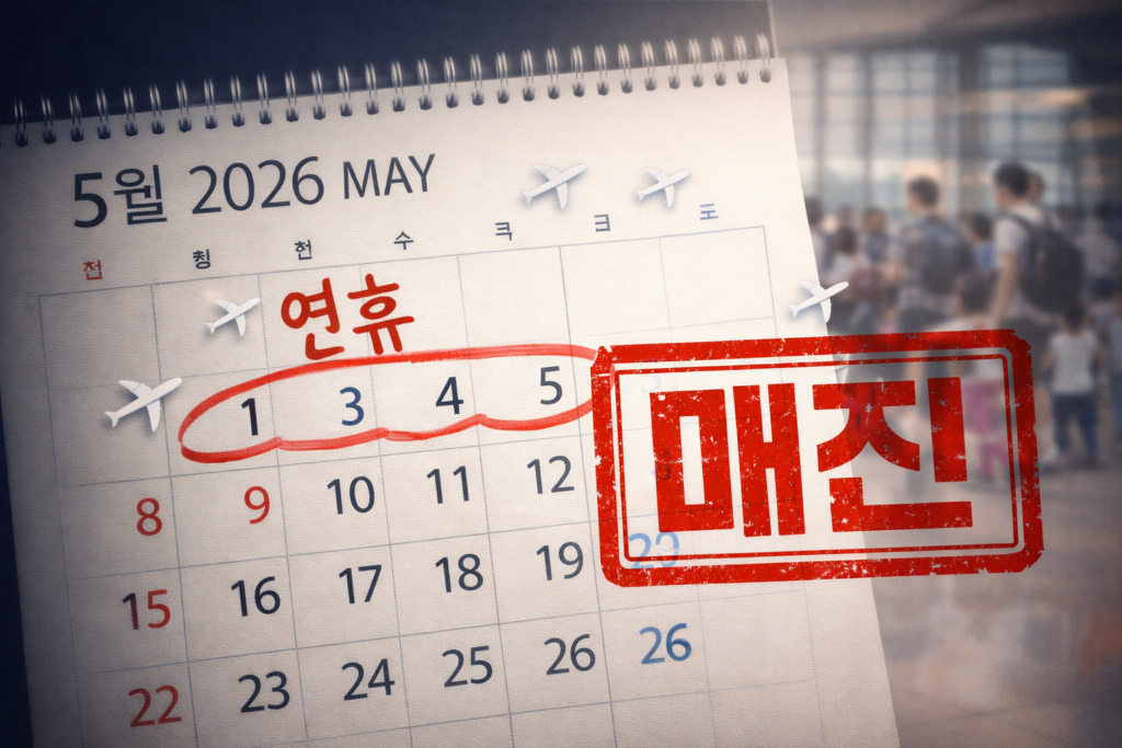 이게 왜 중요하냐면, 월요일(5/4) 하루만 연차 쓰면 토요일부터 화요일까지 3일 연휴가 돼요. 금요일(5/1 노동절)까지 쉬는 직장이면 5일 연휴. 여기에 수요일까지 연차 하나 더 붙이면 6일. 올해 5월 초는 연차 한두 개로 긴 연휴를 만들 수 있는 구조라서, 사람들이 벌써부터 움직이고 있어요.
